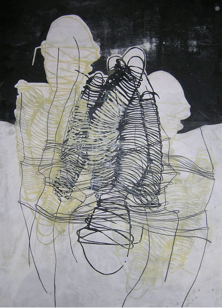 100×70 cm, Holzschnitt, Kohle und Wachs